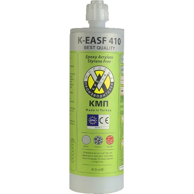 Двухкомпонентный синтетический состав КМП K-EASF на основе эпокси-акрилата позволяет создать крепления, которые не вызывают дополнительного напряжения в базовом материале. Это позволяет осуществлять монтаж точек крепления близко друг к другу, а также близко к краю материала основания. Инжекционную массу K-EASF можно применять как с резьбовыми стержнями, так и с арматурой, при низких температурах или контакте с питьевой водой, что делает данный химический анкер универсальным средством для ответственных креплений. Не содержат стирола и абсолютно безопасны в использовании.